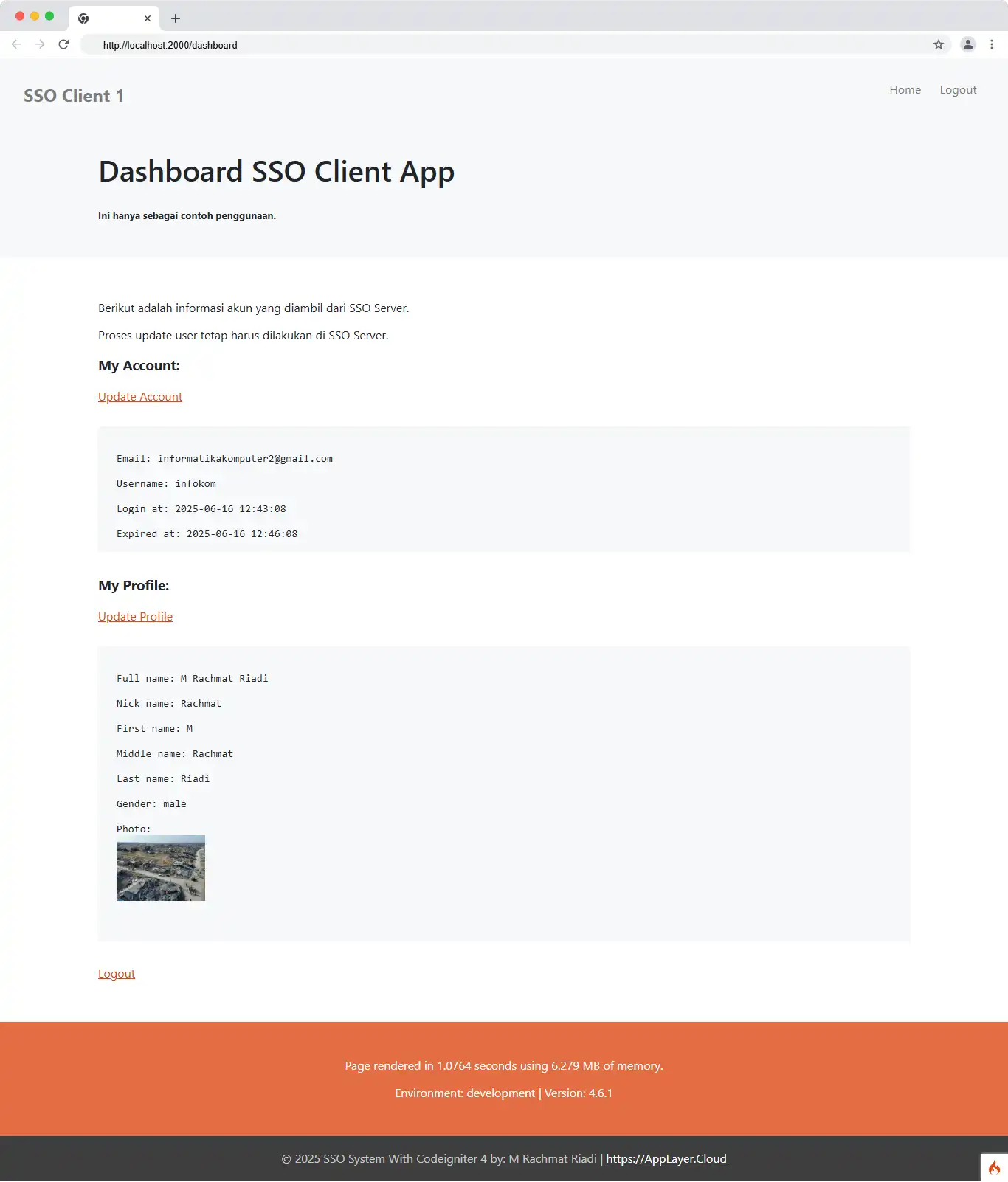 Produk ini adalah sistem Single Sign-On (SSO) dasar yang dibangun menggunakan CodeIgniter 4 dan MySQL, lengkap dengan full source code. Sistem ini memungkinkan pengguna untuk melakukan autentikasi tunggal di beberapa aplikasi. Cocok digunakan sebagai produk siap pakai atau referensi pembelajaran bagi developer.