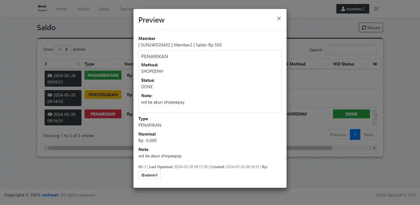 Produk ini adalah aplikasi manajemen bank sampah lengkap yang dibangun menggunakan CodeIgniter 4 dan MySQL, dilengkapi dengan full source code. Sistem ini memudahkan pengelolaan nasabah, pencatatan sampah masuk dan keluar. Cocok digunakan sebagai produk siap pakai atau referensi pembelajaran bagi developer.